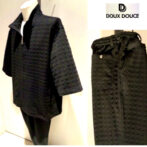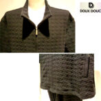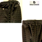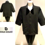 DOUX DOUCE (デュークスデューチェ)春夏/2023/合繊地柄・五分袖トップス&イージーパンツセット/黒/XL(3L~4L)ポリエステル65%・レーヨン35%/中国製  紳士の個性派モード&デザインブランド  薄地で柔らかい合繊ストレッチ生地に全体に施された濃淡同色やや凹凸感ある縄目柄の五分袖・パンツセットアップ。 柔らかく伸縮性に優れた生地で着心地良いです。 パンツウエスト・イージータイプ(ゴム&ヒモ)で調節可能で機能的です。パンツ裾はスキッパー仕様でお直し不要タイプです。
