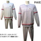 PAGELO<パジェロ>春夏/2025/トレーナー&イージーパンツ/ホワイト・グレー/3Lサイズ/大きいサイズ/レーヨン50%・ポリエステル45%・ポリウレタン5%/スエット上下セット/新品・正規品 紳士の個性派キャラクター&スポーツカジュアル やや薄地のツルツル・サラサラのレーヨン混生地にフロントに施されたロゴデザイン&イージーパンツセット パンツ裾シャーリングリブ仕様でフリー・ウエストイージータイプでお直し必要無いタイプです。