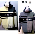 BBCO (ビビコ)秋冬/2023~2024/プルオーバー パーカー ジャケット/ 48(L)・50(2L) サイズ/ホワイト・グレー/中国製/綿100%&ニット(毛50%・アクリル50%)/フード取り外し不可/人気モデル 紳士の個性派エレガンス&モード系ブランド Vシネマでもお馴染みの個性派デザインブランド 柔らかいニット&綿生地に左右不対称に施されたW素材・モノトーンロゴデザインのプルオーバーパーカージャケットです。