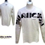 mila schon(ミラショーン)春夏/2024/ロゴプリン 長袖Tシャツ/ホワイト/50(LL)・48(L) サイズ/綿ストレッチ/中国製/綿95%・ポリウレタン5%/大きいサイズ/セレクトショップ 紳士の高感ベターゾーン&イタリアンスポーツ サラットしてやや厚地の綿生地に各所に施された大きなブランドロゴプリントデザインの長袖カットソー。 肌触り良いコットン生地でスポーティな長袖カットソーです。