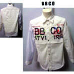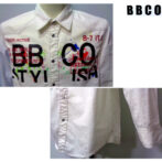 BBCO<ビビコ>春夏/2022/ダメージデニム オーバーシャツ/48(L)・50(2L) サイズ/大きいサイズ/ホワイト/中国製/綿100%/ロゴプリント/人気モデル 紳士の個性派エレガンス&モード系ブランド Vシネマでもお馴染みの個性派デザインブランド 柔らかくやや薄地の綿生地にフロント施された綺麗でアートデザインロゴプリント&ドットボタンのカジュアルオーバーシャツです。 通常のシャツ単体の着こなし&オーバーシャツとしてもコーディネートOKです。