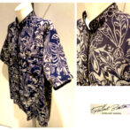 紳士の個性派&デザインブランド 薄地でサラッとしたシワになりにくいポリエステル生地に全体に施されたボタニカルプリント&Wボタン&カラー廻りパイピングの変形スタンドカラーデザインの個性派合繊お洒落半袖シャツです。 セミドレス&カジュアルシーンにお奨めです。シワになりにくくシャリ感有り暑い夏に最適です。 *個性的ななデザイン&マテリアルで希少モデルです。